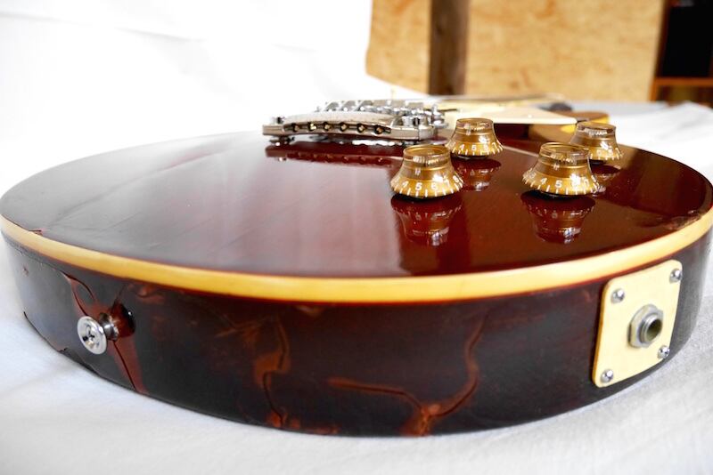市場に出回るLPタイプのモデルは大体がボルトオンネックの仕様になっていますが、この個体のように稀にセットネック仕様の物も存在します。