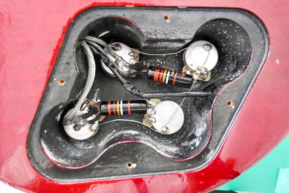さらに、オールドレスポールファンには嬉しいビンテージ・バンブルビーコンデンサー(0.022μF・200V)が取り付けられています。